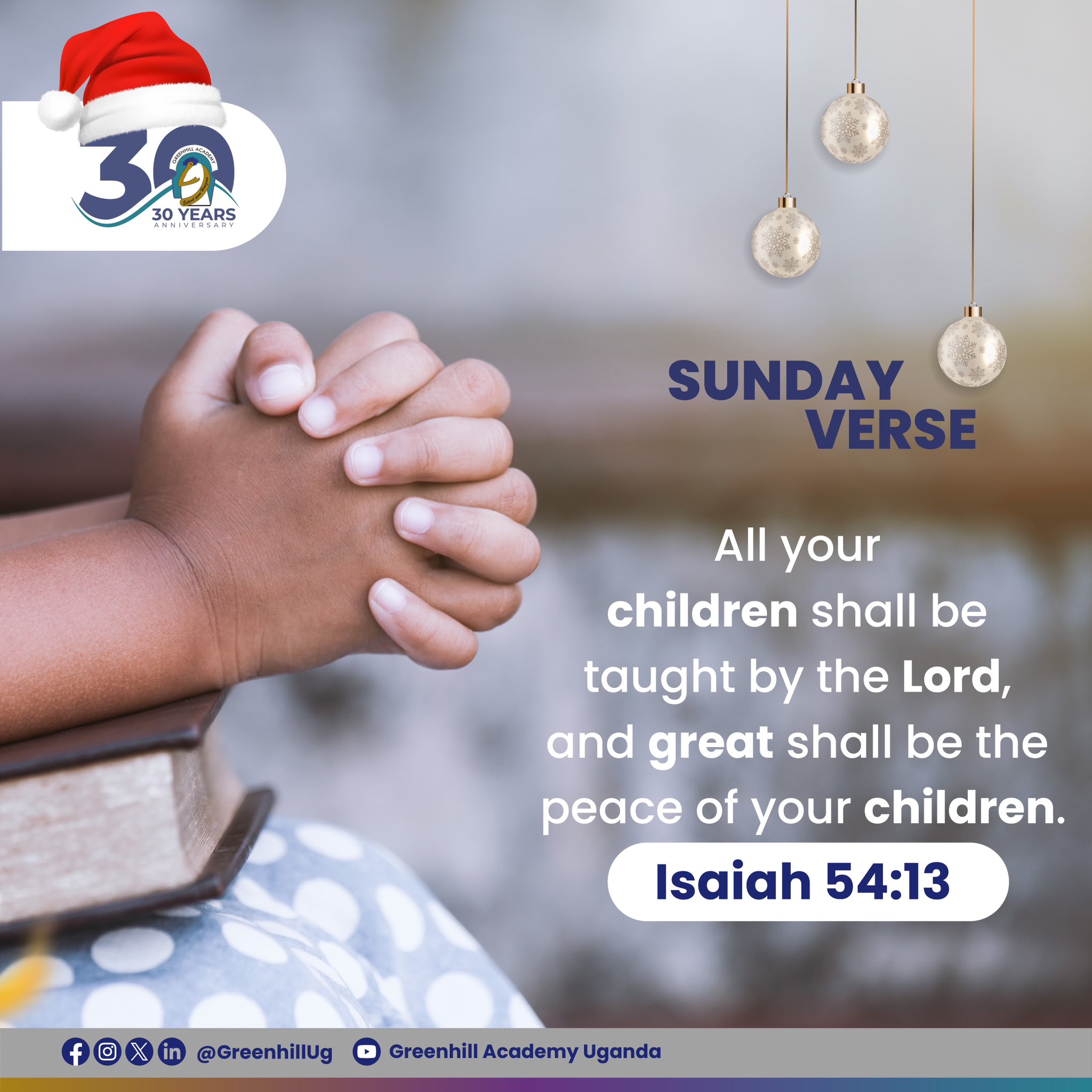 "All your children shall be taught by the Lord, and great shall be the peace of your children." Isaiah 54:13